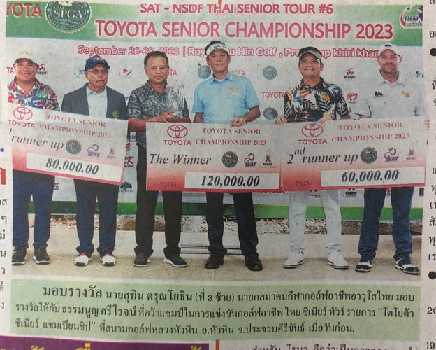 รายการ “SAT-NSDF Thai Senior Tour#6”,”TOYOTA SENIOR CHAMPIONSHIP 2023” ระหว่างวันที่ 26 - 28 กันยายน 2566 ชิงเงินรางวัล 1,000,000 บาท (หนึ่งล้านบาทถ้วน)